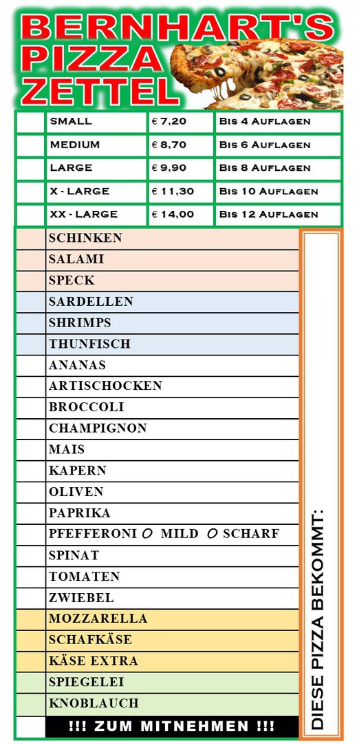 Pizzen auch zum mitnehmen - keine Zustellung